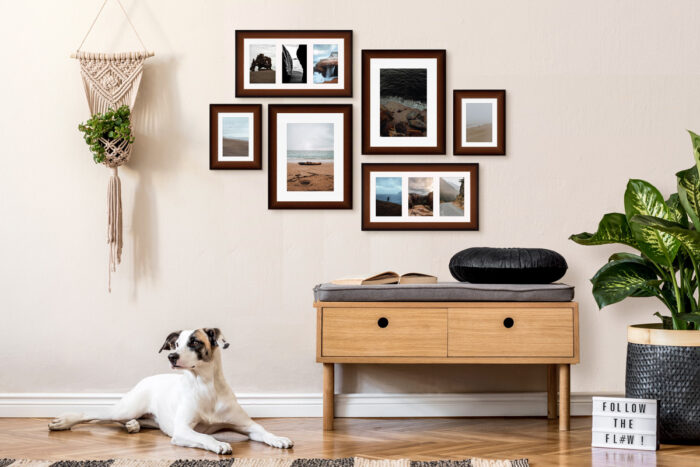 Wystarczy że powiesisz szablon na ścianie, zamocujesz kołki w wyznaczonym miejscu i gotowe – masz idealnie równą, gotową galerie ścienną!