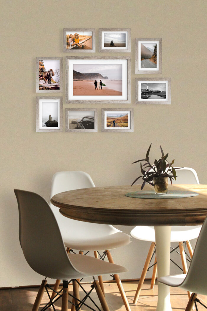 Wystarczy że powiesisz szablon na ścianie, zamocujesz kołki w wyznaczonym miejscu i gotowe – masz idealnie równą, gotową galerie ścienną!
