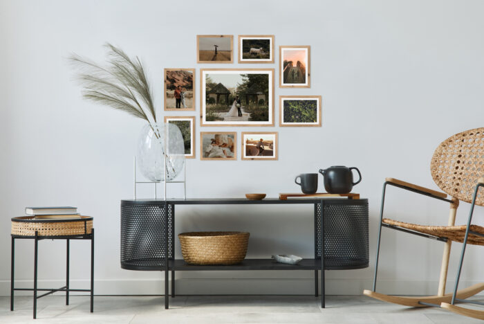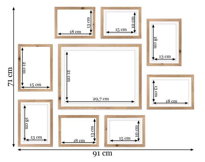 Wystarczy że powiesisz szablon na ścianie, zamocujesz kołki w wyznaczonym miejscu i gotowe – masz idealnie równą, gotową galerie ścienną!