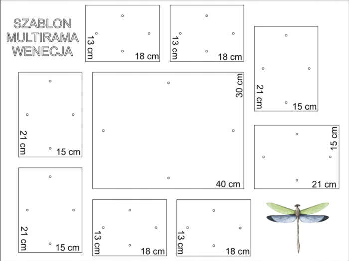 - szablonu 1:1 (papierowy ułatwiający rozmieszczenie ramek)