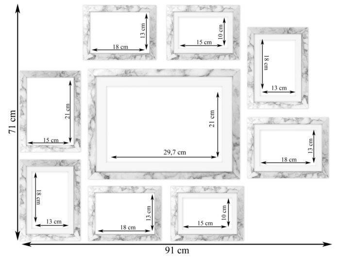 Szablon rzeczywistej wielkości 1:1 sprawia, że bez problemu można odtworzyć prezentowany układ ram, bez potrzeby żmudnego procesu mierzenia i poziomowania.