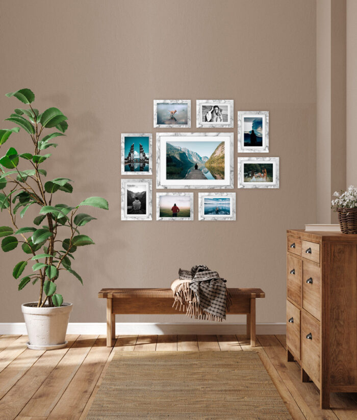 Wystarczy że powiesisz szablon na ścianie, zamocujesz kołki w wyznaczonym miejscu i gotowe – masz idealnie równą, gotową galerie ścienną!