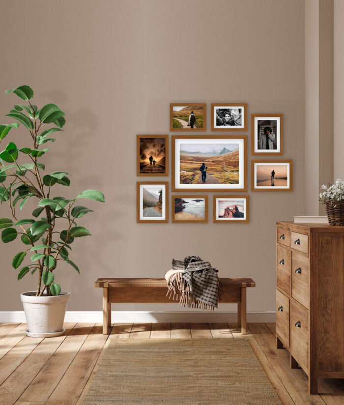 Wystarczy że powiesisz szablon na ścianie, zamocujesz kołki w wyznaczonym miejscu i gotowe – masz idealnie równą, gotową galerie ścienną!
