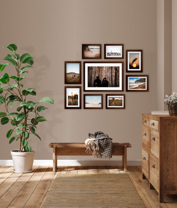Wystarczy że powiesisz szablon na ścianie, zamocujesz kołki w wyznaczonym miejscu i gotowe – masz idealnie równą, gotową galerie ścienną!