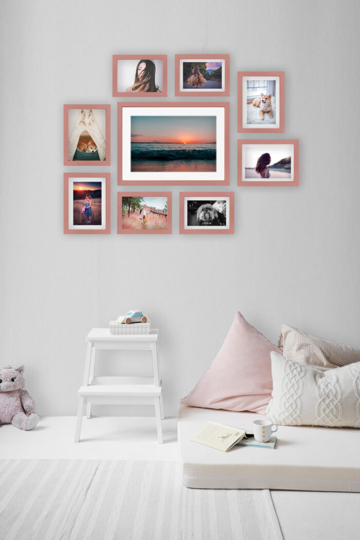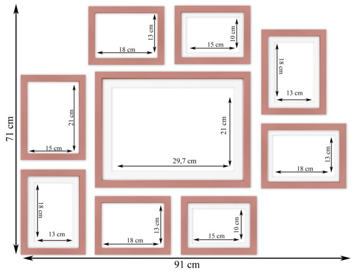 Wystarczy że powiesisz szablon na ścianie, zamocujesz kołki w wyznaczonym miejscu i gotowe – masz idealnie równą, gotową galerie ścienną!