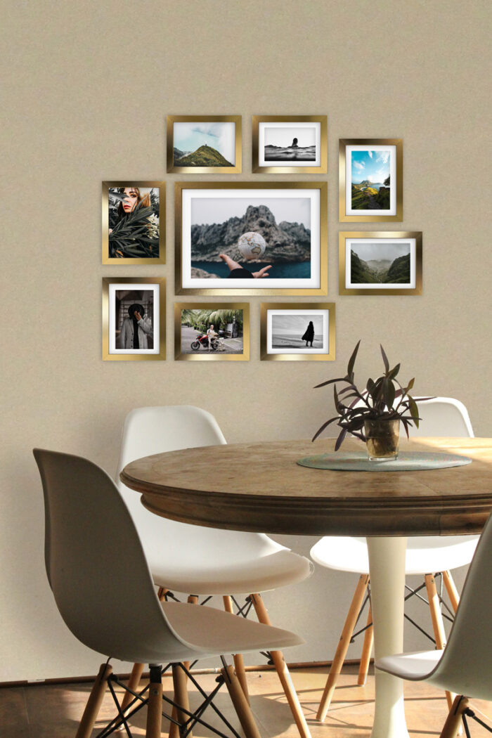 Wystarczy że powiesisz szablon na ścianie, zamocujesz kołki w wyznaczonym miejscu i gotowe – masz idealnie równą, gotową galerie ścienną!