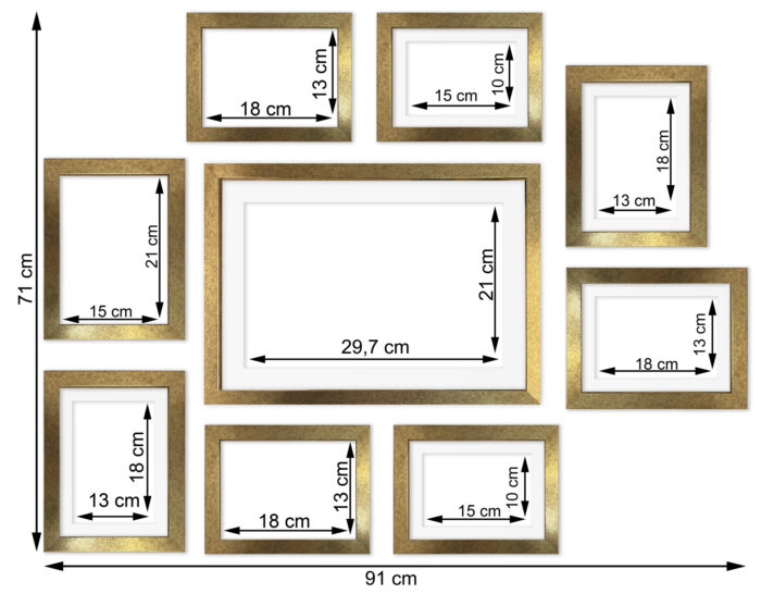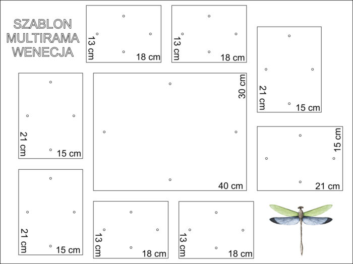 Szablon rzeczywistej wielkości 1:1 sprawia, że bez problemu można odtworzyć prezentowany układ ram, bez potrzeby żmudnego procesu mierzenia i poziomowania.