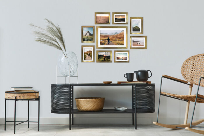 Wystarczy że powiesisz szablon na ścianie, zamocujesz kołki w wyznaczonym miejscu i gotowe – masz idealnie równą, gotową galerie ścienną!