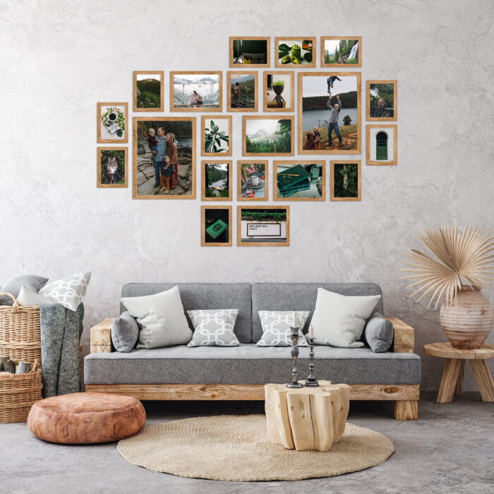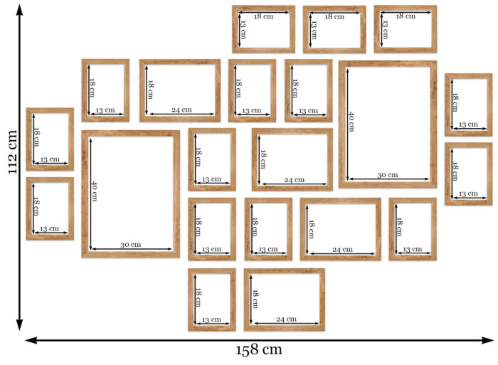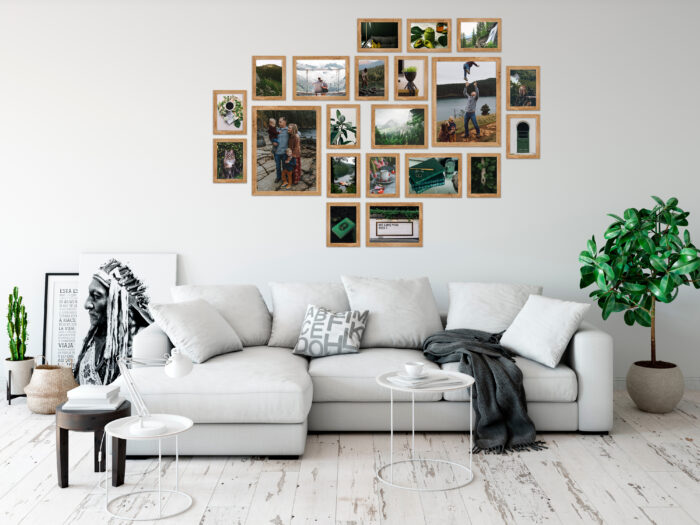 Wystarczy że powiesisz szablon na ścianie, zamocujesz kołki w wyznaczonym miejscu i gotowe – masz idealnie równą, gotową galerie ścienną!