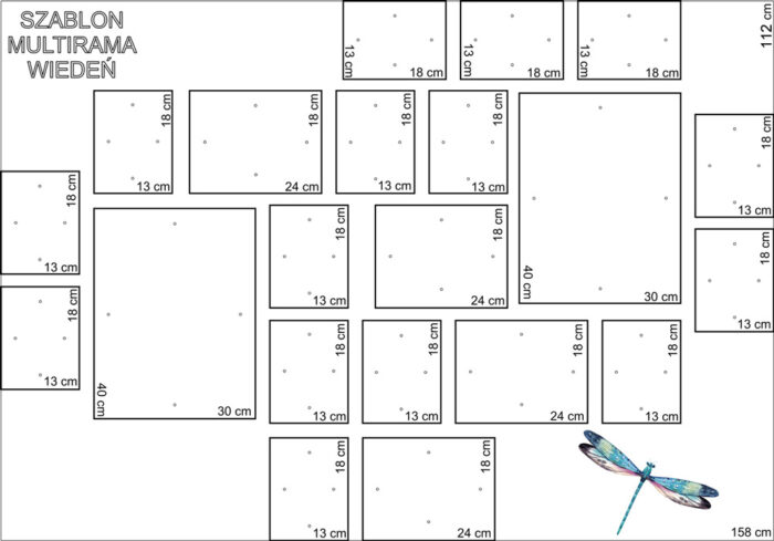 Szablon rzeczywistej wielkości 1:1 sprawia, że bez problemu można odtworzyć prezentowany układ ram, bez potrzeby żmudnego procesu mierzenia i poziomowania.