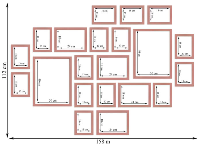 Szablon rzeczywistej wielkości 1:1 sprawia, że bez problemu można odtworzyć prezentowany układ ram, bez potrzeby żmudnego procesu mierzenia i poziomowania.