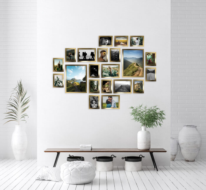 Wystarczy że powiesisz szablon na ścianie, zamocujesz kołki w wyznaczonym miejscu i gotowe – masz idealnie równą, gotową galerie ścienną!