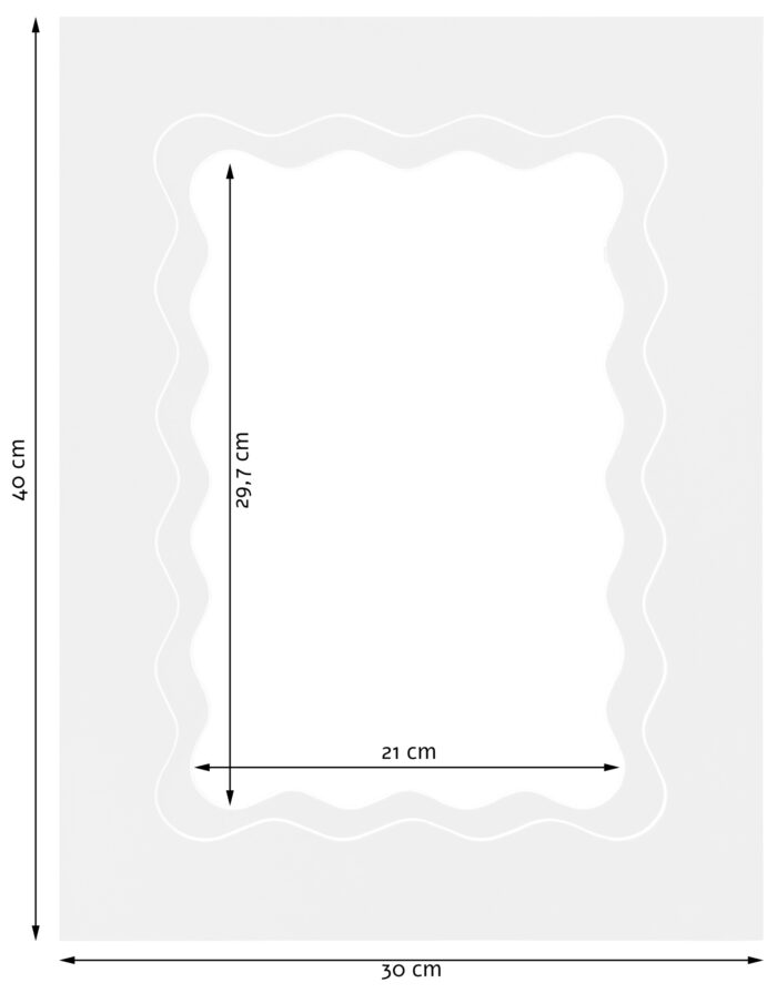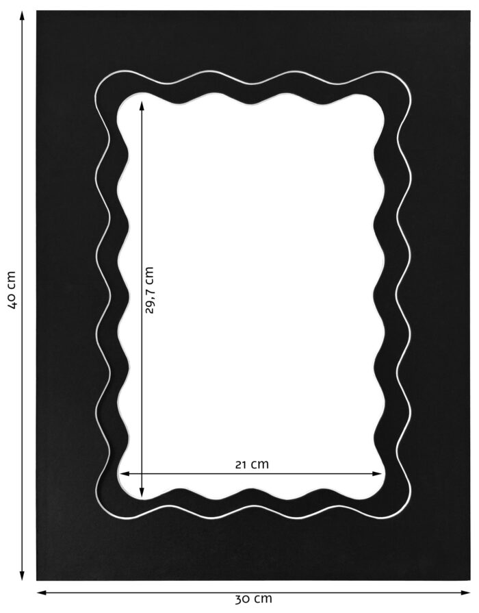 - ramka o wymiarach wewnętrznych 30x40cm, okno passe partout 21×29,7cm (A4)