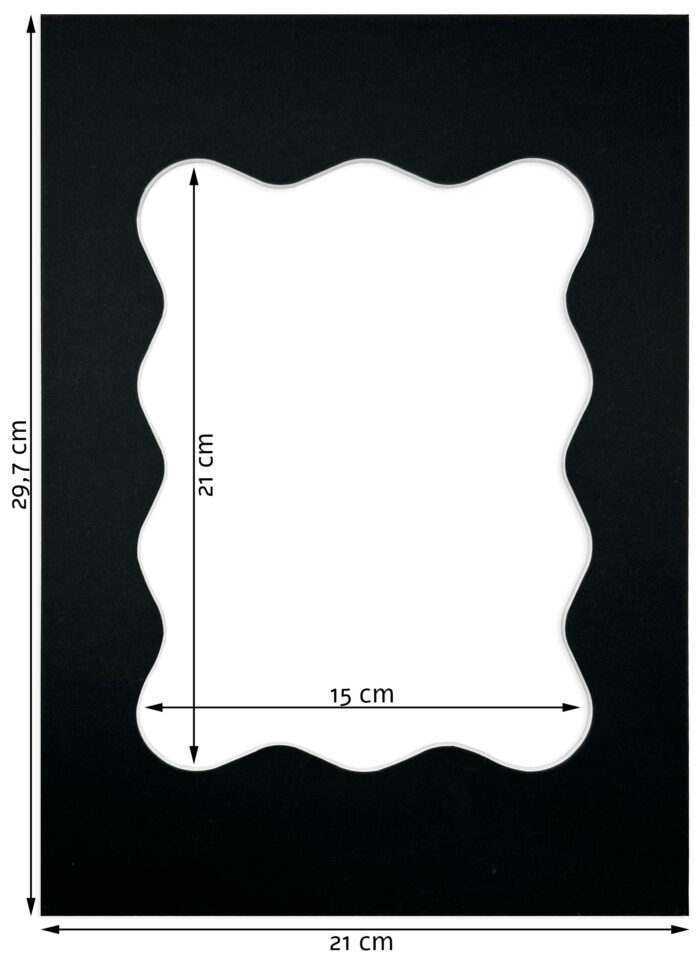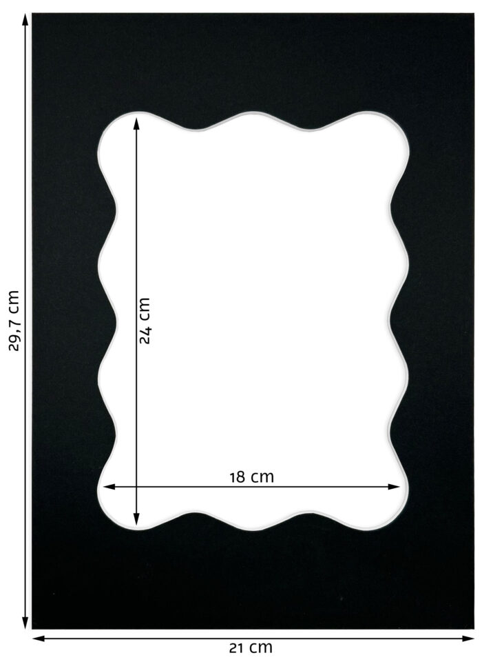 - ramka o wymiarach wewnętrznych a4 (21×29,7cm), okno passe partout 15×21cm