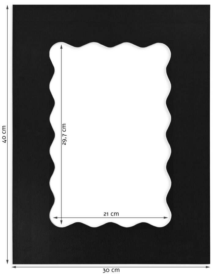 - ramka o wymiarach wewnętrznych 30x40cm, okno passe partout 21×29,7cm (A4)