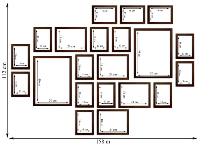 Szablon rzeczywistej wielkości 1:1 sprawia, że bez problemu można odtworzyć prezentowany układ ram, bez potrzeby żmudnego procesu mierzenia i poziomowania.