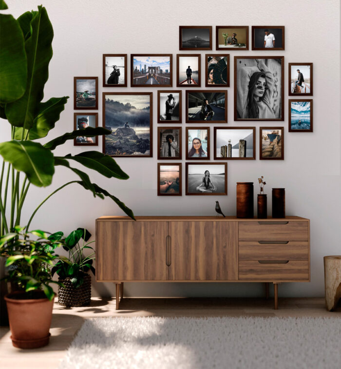 Wystarczy że powiesisz szablon na ścianie, zamocujesz kołki w wyznaczonym miejscu i gotowe – masz idealnie równą, gotową galerie ścienną!