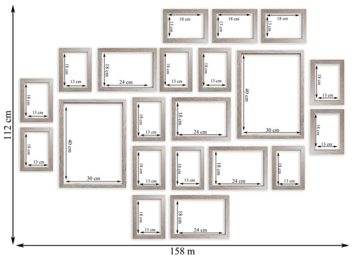 Wystarczy że powiesisz szablon na ścianie, zamocujesz kołki w wyznaczonym miejscu i gotowe – masz idealnie równą, gotową galerie ścienną!