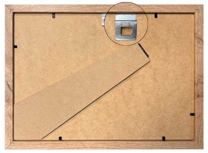 Każda z naszych ramek zawiera tył w postaci płyty HDF i uniwersalną zawieszką, która umożliwia zawieszenie ramki zarówno w pionie, jak i poziomie.
