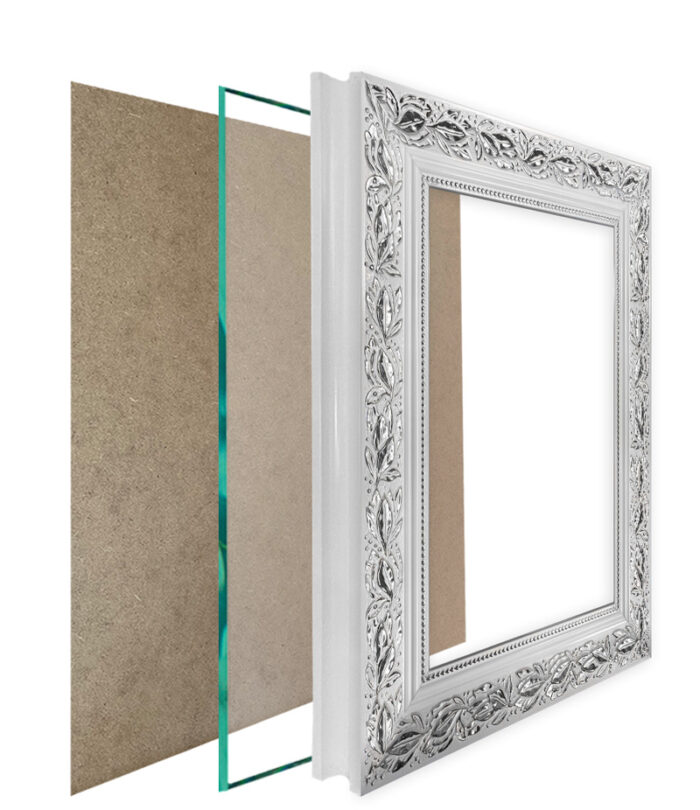 Każda z naszych ramek zawiera tył w postaci płyty HDF i dwie zawieszki, które umożliwiaką zawieszenie ramki zarówno w pionie, jak i poziomie.