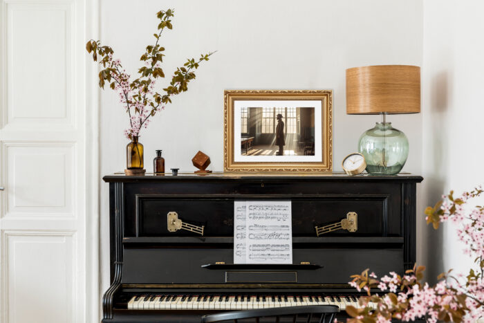 Ramka zawiera zawieszkę zmienną oraz stopkę, można więc ją zawiesić i postawić w orientacji PIONOWEJ lub POZIOMEJ