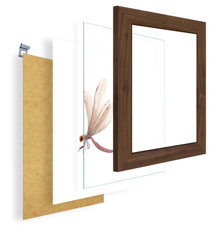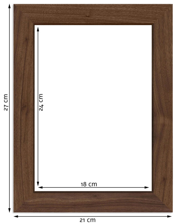 Każda z naszych ramek zawiera tył w postaci płyty HDF i uniwersalną zawieszką, która umożliwia zawieszenie ramki zarówno w pionie, jak i poziomie (formaty 30×40 i 30×42 a3 posiadają tylko zawieszkę zmienną, bez stopki).