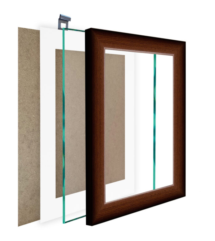 - Ramka razem ze szkłem, zawieszką i płytą HDF.