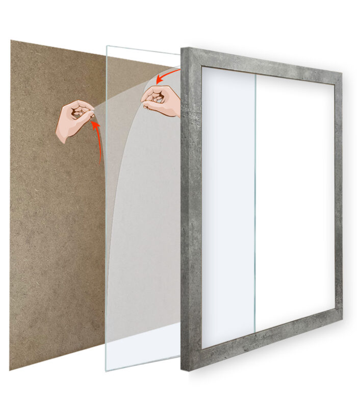 Każda z naszych ramek zawiera tył w postaci płyty HDF i uniwersalną zawieszką, która umożliwia zawieszenie ramki zarówno w pionie, jak i poziomie.