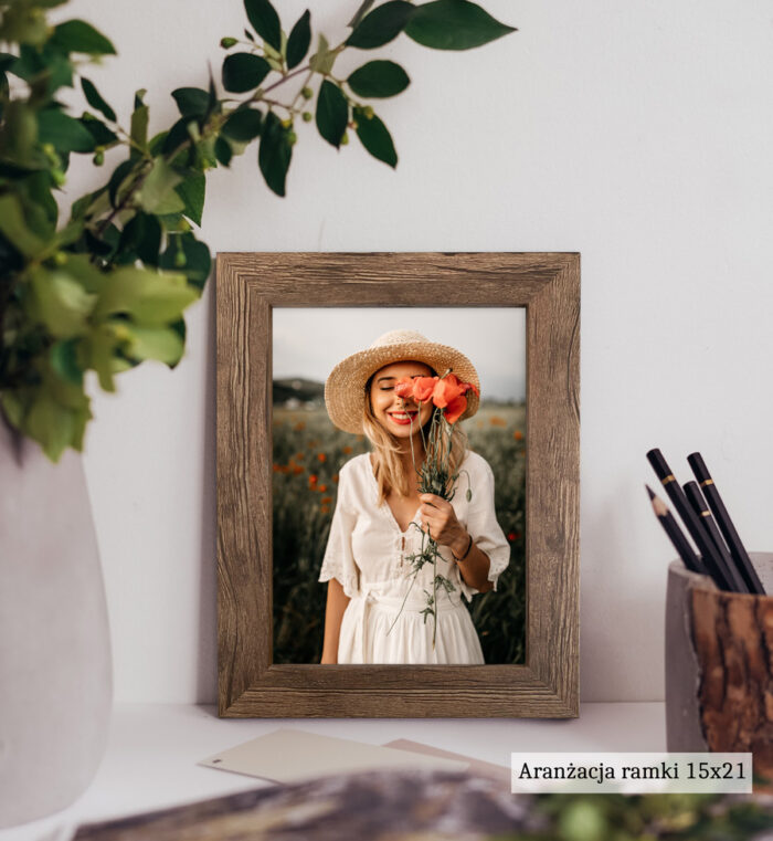 Zdjęcia poglądowe przedstawiają ramkę w formacie 15×21