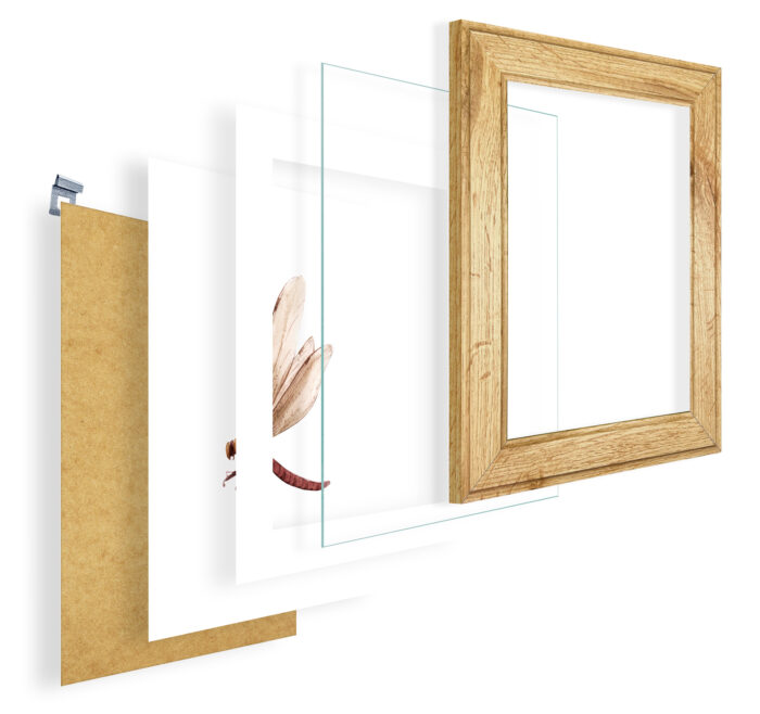 Każda z naszych ramek zawiera tył w postaci płyty HDF, stopkę do postawienia i uniwersalną zawieszkę, która umożliwia zawieszenie ramki zarówno w pionie, jak i poziomie.