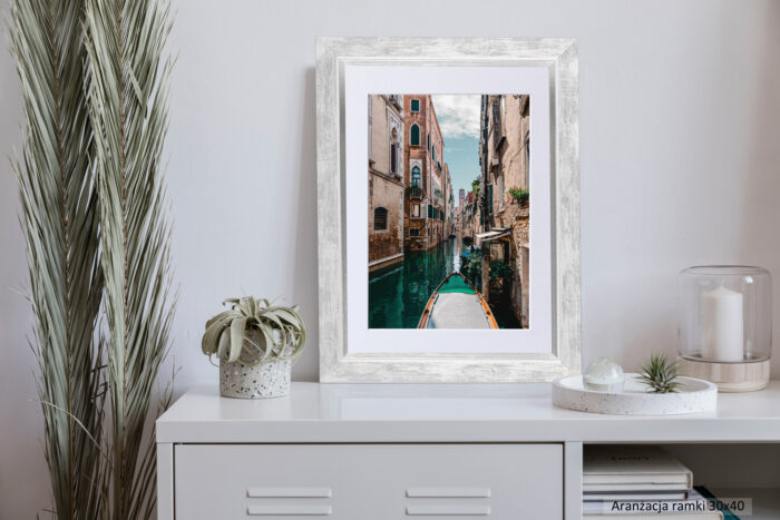 Ramka na zdjęcie Tokio – Biały przecierany (z passe-partout)