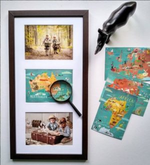 Każda ramka z zestawu posiada twardą płytę HDF, szybkę i passe partout na 3 zdjęcia