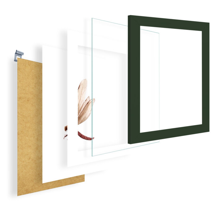 - Ramka razem z passe-partout, szkłem, zawieszką i płytą HDF.