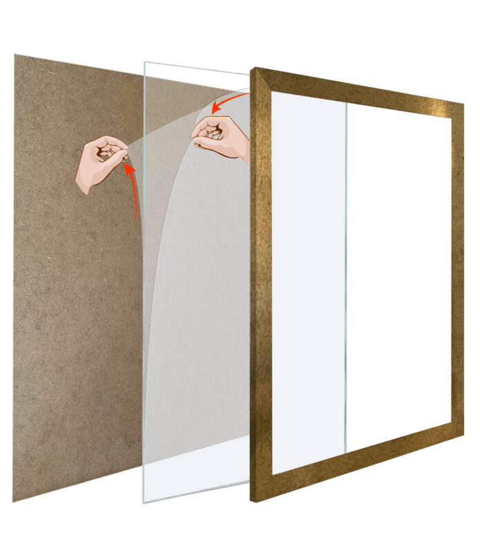 Każda z naszych ramek zawiera tył w postaci płyty HDF i dwie zawieszki które umożliwiają nam zawieszenie ramki zarówno w pionie, jak i poziomie.
