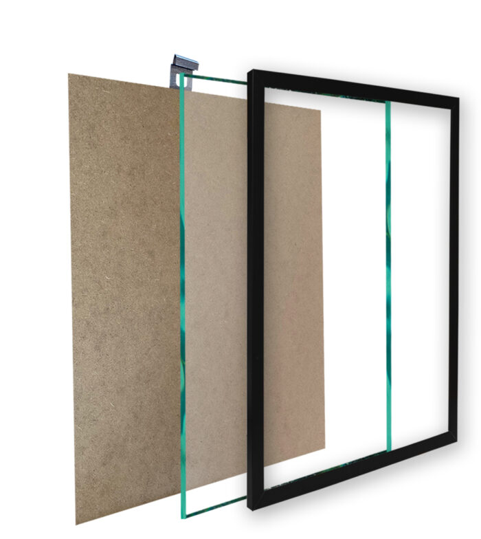 - Ramki razem ze szkłem, stopką, zawieszką i płytą HDF.
