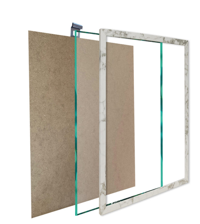 - Ramki razem ze szkłem, stopką, zawieszką i płytą HDF.
