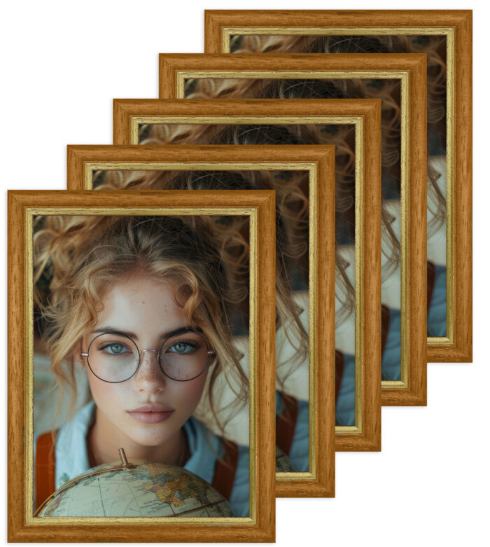 - Kolor: jasny brąz ze złotym paskiem (każda ramka z naturalnego drewna jest unikalna więc ramki mogą się delikatnie różnić odcieniem drewna i usłojeniem)