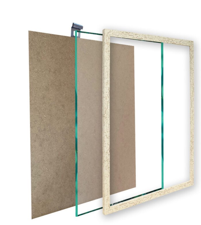- Ramki razem ze szkłem, stopką, zawieszką i płytą HDF.