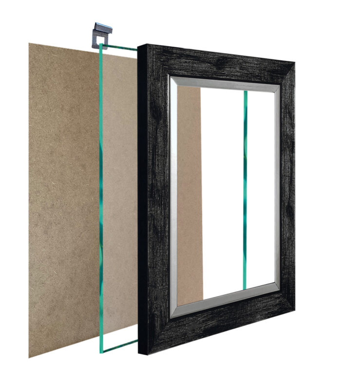 - Ramki razem ze szkłem, stopką, zawieszką i płytą HDF.
