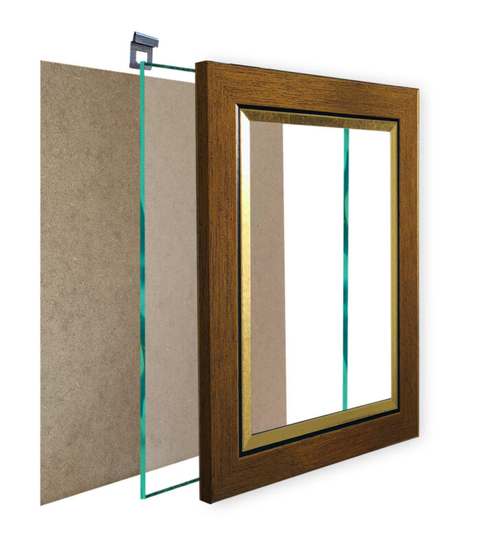 - Ramki razem ze szkłem, stopką, zawieszką i płytą HDF.
