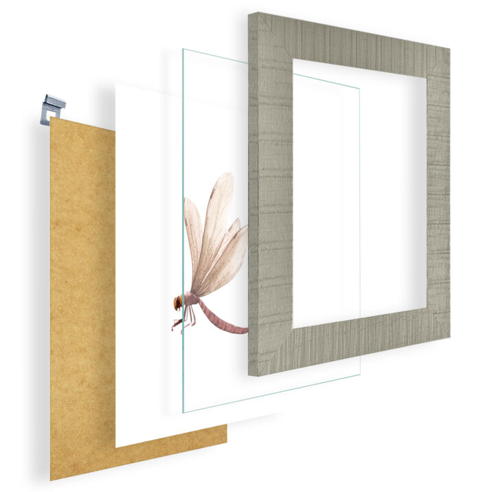 Każda z naszych ramek zawiera tył w postaci płyty HDF i uniwersalną zawieszką, która umożliwia zawieszenie ramki zarówno w pionie, jak i poziomie.
