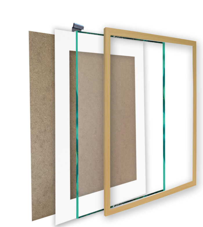 - Ramki razem ze szkłem, stopką, zawieszką i płytą HDF.