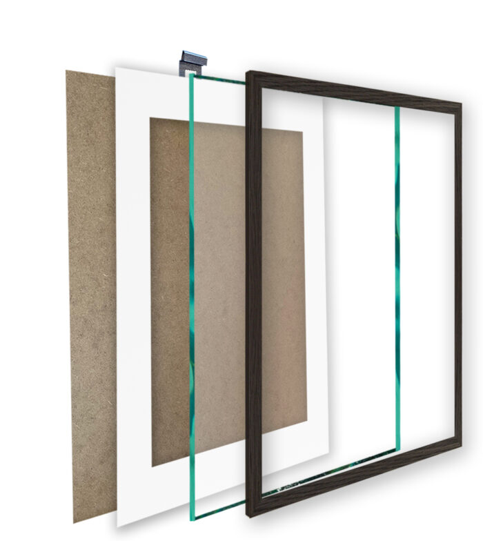 Każda z naszych ramek zawiera tył w postaci płyty HDF i uniwersalną zawieszką, która umożliwia zawieszenie ramki zarówno w pionie, jak i poziomie.